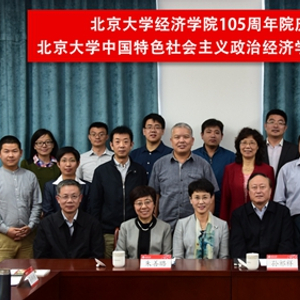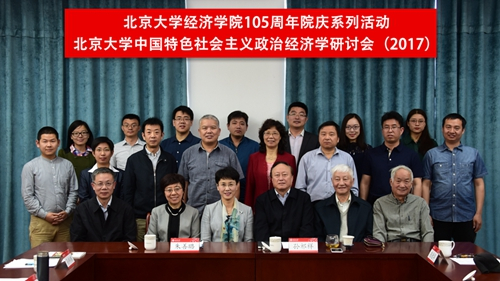 2017年4月26日上午,作为北京大学经济学院105周年院庆系列活动之一,由北京大学批准筹建的“中国特色社会主义政治经济学研究中心”(下文简称为“中心”)在经济学院403会议室举办了主题为“中国特色社会主义政治经济学理论体系及其构建”的学术研讨会。参会人员包括:中心顾问委员会主席、北京大学原党委书记朱善璐教授,中心主任、北京大学经济学院院长孙祁祥教授,中心顾问委员会委员陈德华教授、钱淦荣教授、王志伟教授,以及中心成员黄桂田教授、孙蚌珠教授、叶静怡教授、张辉教授、苏剑教授、方敏副教授、宋磊副教授、宋朝龙副教授、赵晓军副教授、贺大兴副教授等,北京大学经济学院政治经济学专业博士研究生列席了研讨会。