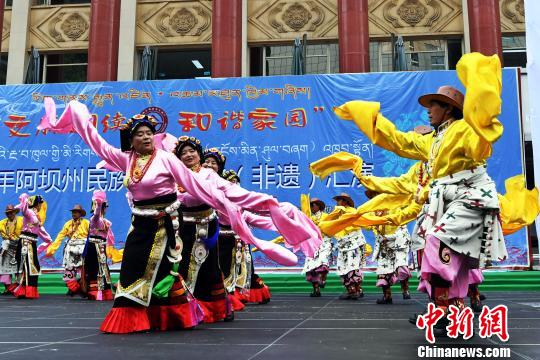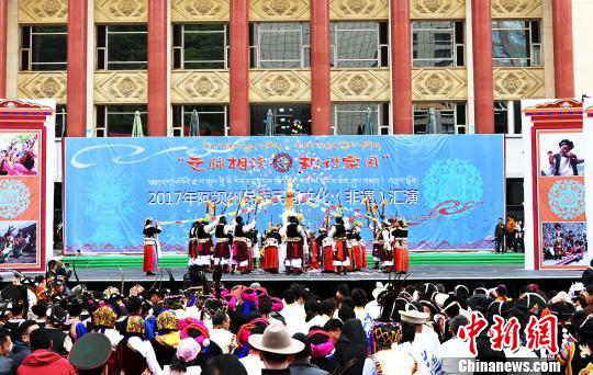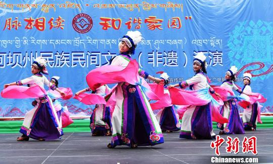四川省阿坝州举办2017民族民间文化(非遗)汇演 中国新闻网 2017.04.2815:10 关注 川西北藏族山歌《纳勒西莫》。 安源 摄 安多独特的服饰展示。 安源 摄 民俗舞蹈《摇火把》。 安源 摄 羌族传统歌舞表演。 安源 摄 民间舞蹈《卡斯达温》。 安源 摄 民间说唱表演《折嘎》。 安源 摄 汇演现场。 安源 摄 民间锅庄展示。 安源 摄 藏戏选段《智美更登》。 安源 摄 汇演现场。 安源 摄4月28日,文脉相续·和谐家园——2017年四川省阿坝州民族民间文化(非遗)汇演在该州马尔康市举行。来自阿坝州13县(市)的14个演出团队以原生态藏羌歌舞、说唱、藏戏、羌戏等形式带来17项民族民间文化(非遗)节目参加了汇演。