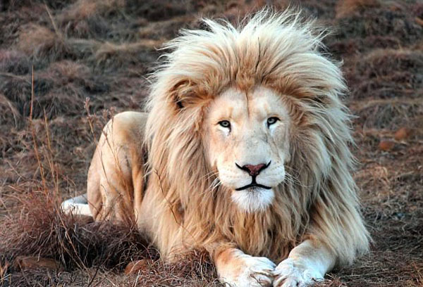 南非白狮镜头前骄傲摆拍炫耀迷人鬃毛