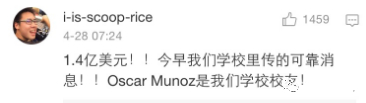 和解消息一出,赔偿金额受到极大关注。由于具体金额并未披露,一时间网络上的猜测开始满天飞。微博网友@i-is-scoop-rice 则直接爆料称,“1.4亿美元!!今早我们学校里传的可靠消息!!Oscar Munoz(编者注:美联航CEO)是我们学校网友!!”