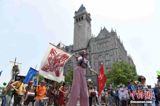 当地时间4月29日,华盛顿爆发上万人规模的游行活动,抗议特朗普的气候政策和能源政策。当天适逢美国总统特朗普执政满一百天。 中新社记者 刁海洋 摄
