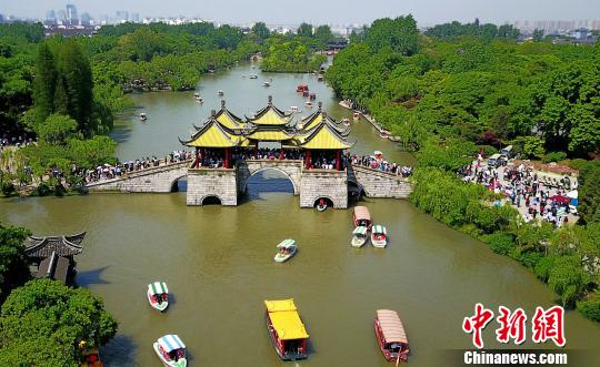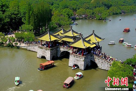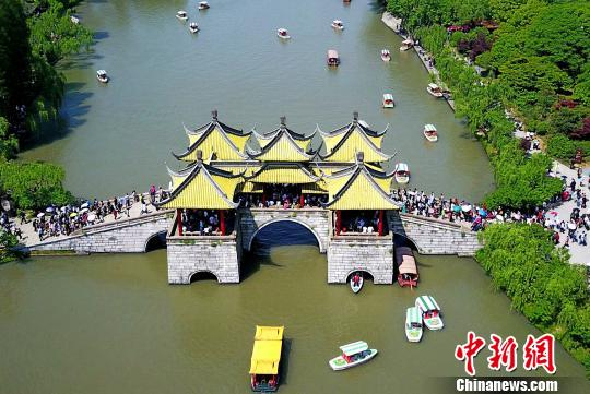 图为“五一”小长假扬州瘦西湖景区内人流涌动。 崔佳明 摄