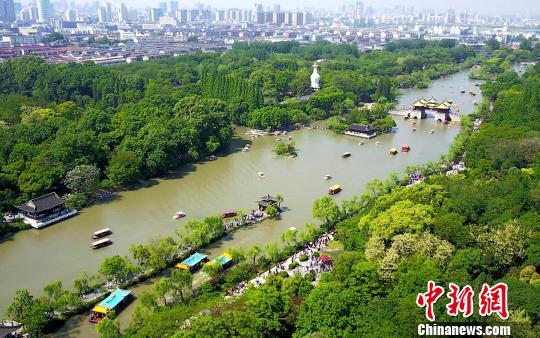 图为瘦西湖湖面上游船如织。 崔佳明 摄