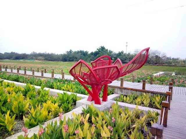 水质清澈,各类花卉和水生植物竞相开放,风车、雕塑、栈道等人文景观让游客们不时驻足观赏。