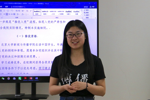 为学习贯彻全国高校思想政治工作会议和中央31号文件精神、将从严治党原则落实到基层,北京大学新闻与传播学院2015级本科生团支部于2017年4月28日下午在学院105室举行了“党员的标准、入党动机及发展党员工作程序”主题党课暨团支部推优入党活动。学院2015级本科生入党积极分子和全体团员参加了此次活动。党课由新闻与传播学院团委书记、2015级本科生辅导员刘爽健主讲。