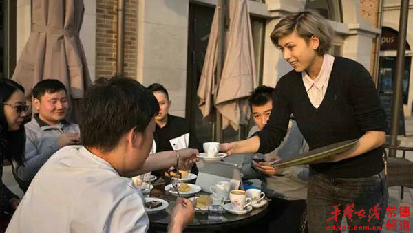 法比安在与客人聊天,伊沙为他送上了一杯香浓的咖啡。