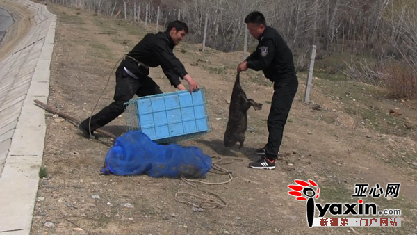 河狸被困灌渠 新疆清河县警民合作救它上岸