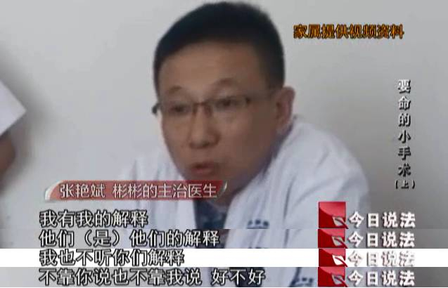 在彬彬去世后的第四天,家属再次找到主治医生张艳斌。在没有透露彬彬死亡之前,医生一再强调彬彬的治疗和恢复都没有问题。
