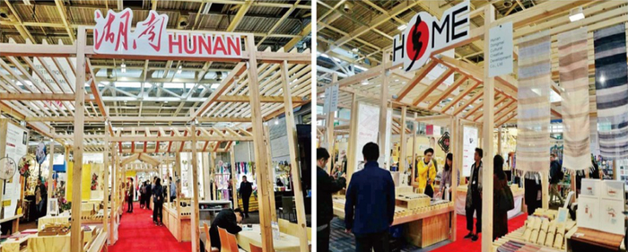 此次展览内容主要来源于我校设计艺术学院“新通道”设计与社会创新项目、“花瑶花”文创公益精准扶贫项目等。在巴黎国际博览会“世界文化与艺术”主题下的“多彩的世界(Riches of the world)”展区,“乡home湖南”设计与社会创新展展出了手工艺品、湘绣艺术品、家居产品、农产品、文化创意产品、书籍、纪录片等等,以及“梭说”品牌联合多位时尚设计师与手工艺人协作设计的手工围巾、手袋等时尚产品,还有3D打印与竹编手工艺结合的科技文化融合产品。展品内容涵盖了湖南多种特色手工艺,例如竹编、湘绣、侗锦、挑花、剪纸、拼布绣、锔瓷等,以及以岳麓书院文化为代表的多种湖湘特色文化。