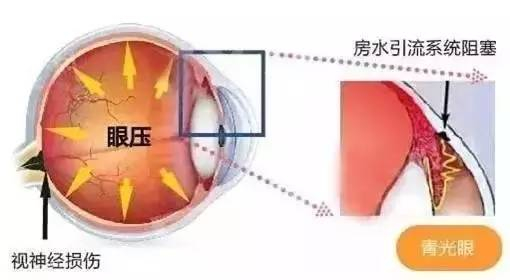 当眼压突然升高或长期慢慢升高时,眼睛里的一些组织受眼压的压迫会发生改变。如眼睛最不能耐受压力的地方是视神经,长时间眼压过高,将使视神经受到破坏,进而引发青光眼疾病。