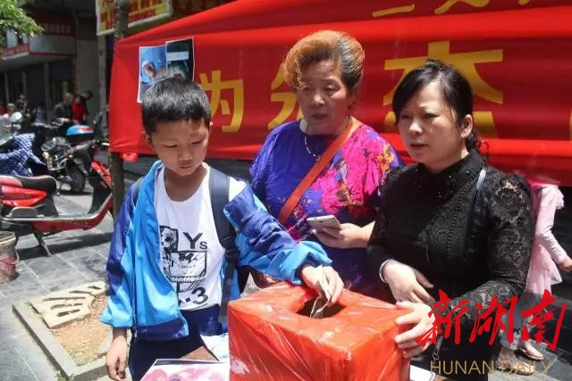 徐建莲老人在街道为朱杰开展募捐活动。家住临津门附近的徐建莲老人,舍弃与朋友到东江湖旅游的机会,5月5日,她首先组织自己的知青好友数十人在临津门周边街道开展募捐活动。社区居民、过往市民、老人小孩等爱心人士纷纷捐款。邵阳一中有一位老师,从钱包抽出了500元投到募捐箱,没留下名字就走了。一天下来,募捐到爱心款2.9万余元。接过这份沉甸甸的“爱心”,石莲香内心百感交集。