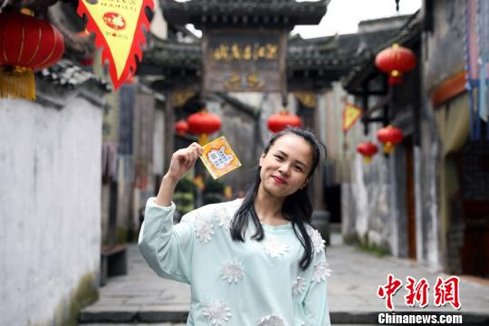 一位游客展示刮出“福”字的“福票”。 章斌 摄