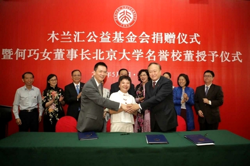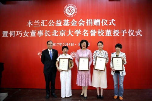 木兰汇公益基金会捐赠仪式暨何巧女董事长北京大学名誉校董授予仪式举行
