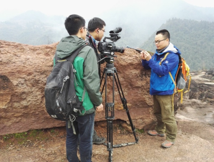 西南大学地理科学学院杨平恒副教授受邀与央视工作者一起走进气势磅礴的红石林,历时十天拍摄。以红石林为主线,通过杨平恒副教授的讲解,从不同视觉展现5亿年前扬子古海经地壳运动、侵蚀、溶蚀作用,形成独特而壮丽的地质奇观。