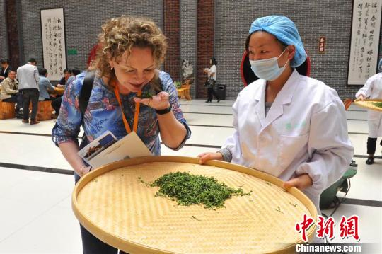 海外客商品尝五峰茶叶。 钟欣 摄
