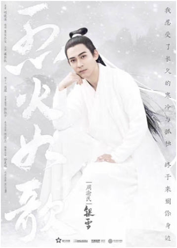 今年三月,完美世界和嘉行传媒马不停蹄地推出了第一个合作的作品——改编自明晓溪小说的同名电视剧《烈火如歌》。该剧的人物海报一经推出就引发了不小的讨论,曾经出演《流星花园》中花泽类的仔仔周渝民饰演的男主角银雪,一身白衣胜雪的造型让原著粉们对电视剧充满期待,最近霸屏的“凤九”迪丽热巴出演的女主角烈如歌,一身红衣的造型和灵动的眼神也让网友惊呼简直就是从书里走出来的。
