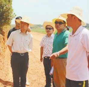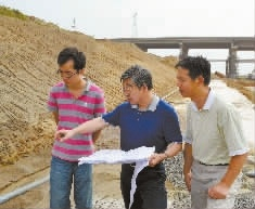 2013年8月21日,郑健龙院士(中)现场研究膨胀土难题。通讯员 摄