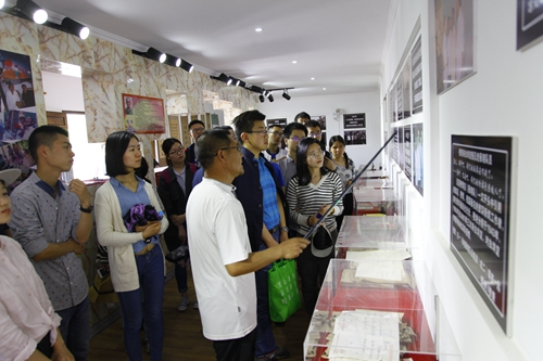 调研结束后,调研团赴座落在白洋淀文化苑内的雁翎队纪念馆开展革命教育,学习抗日战争期间雁翎队员利用白洋淀独特地势灵活抗日的英勇事迹。党员们认真观看每一样展品,不时驻足留念,仔细询问展品、照片背后的故事。纪念馆内大量翔实、丰富、珍贵的历史照片、图表、文献资料、流传下来的实物与形象雕塑再现了闻名中外的雁翎队英勇顽强、机智灵活地打击日寇的生动场面和光辉战斗历程。