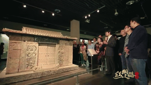 这是中国的西安市博物馆,一副青石雕刻的棺椁静静地陈列,棺椁的主人姓史,是一位在中国做生意的粟特人,葬于公元580年。他的故乡在今天中亚阿姆河和锡尔河流域的某个城市,他把中国的丝绸等商品辗转贩运到今天的伊朗、土耳其一带,再从那里采购玻璃、玉石等各种奇珍异宝,再贩运回中国。