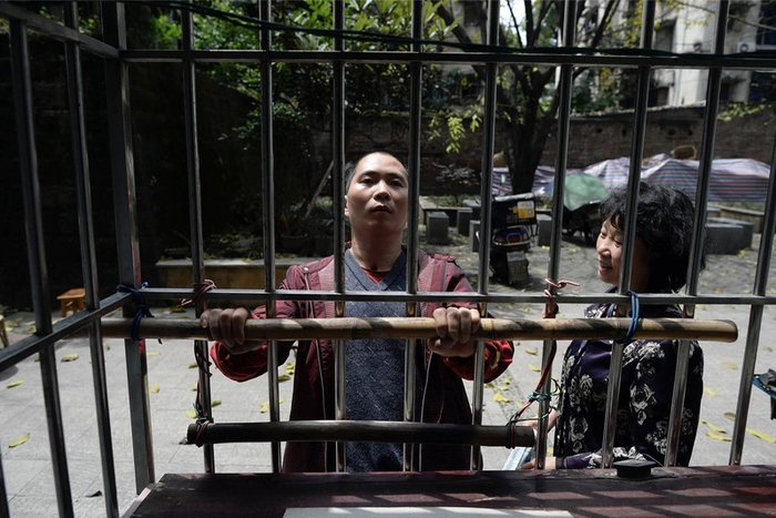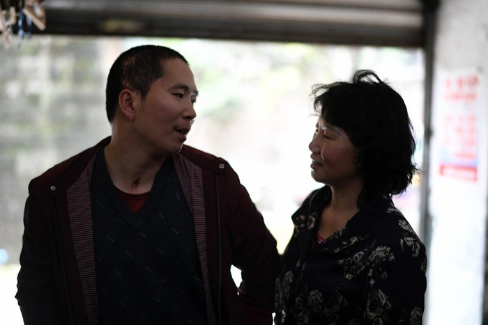 母亲叫周遵兰,今年61岁。蓝顺利是她儿子,今年37岁。眼前这一幕,看似有些匪夷所思。不过,在母爱的天平上,一端是周遵兰,另一端是智商仅三四岁的蓝顺利,就很容易理解了。