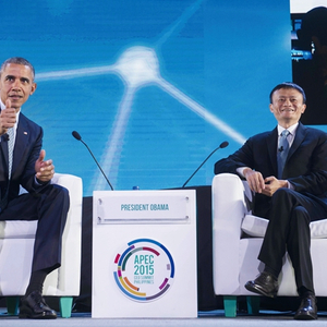 2015年11月18日,在菲律宾举行的APEC工商领导人峰会上,马云与时任美国总统奥巴马展开对话。