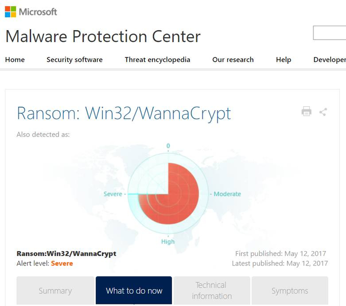 微软公司发布声明称,这款勒索病毒的文件名是Ransom:Win32.WannaCrypt。微软已于3月14日提供了系统安全升级补丁,目的就是用来防范这一款病毒袭击。现已运行微软免费杀毒软件和更新了安全包的用户都没有危险。