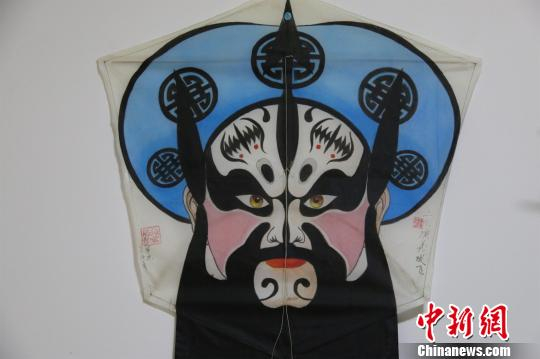 京剧脸谱软板小型“张飞”等充满中国元素的风筝作品曾远赴美国参展 梁婷 摄
