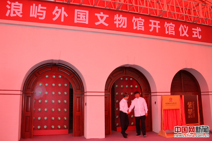 2017年5月13日,故宫鼓浪屿外国文物馆正式开馆。图为厦门市市长庄稼汉(左)和故宫博物院院长单霁翔共同开启故宫鼓浪屿外国文物馆的红色大门。摄影 中国网 苏向东