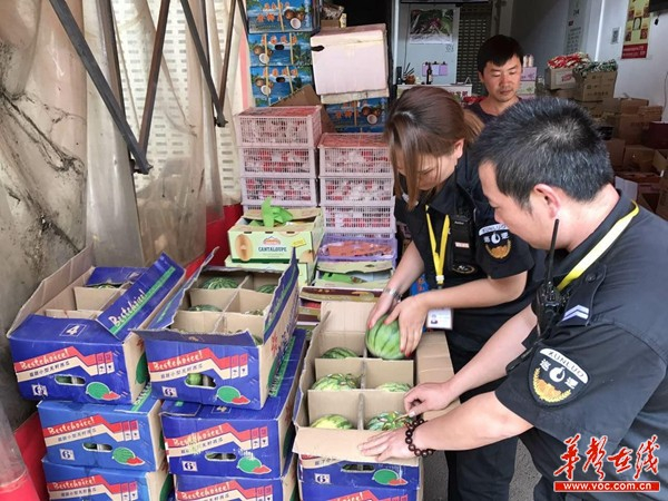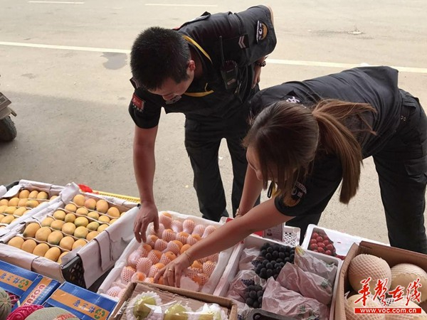 市场经营户水果包装箱抽查。