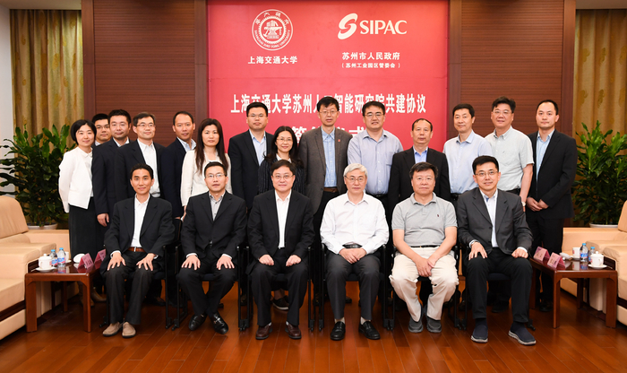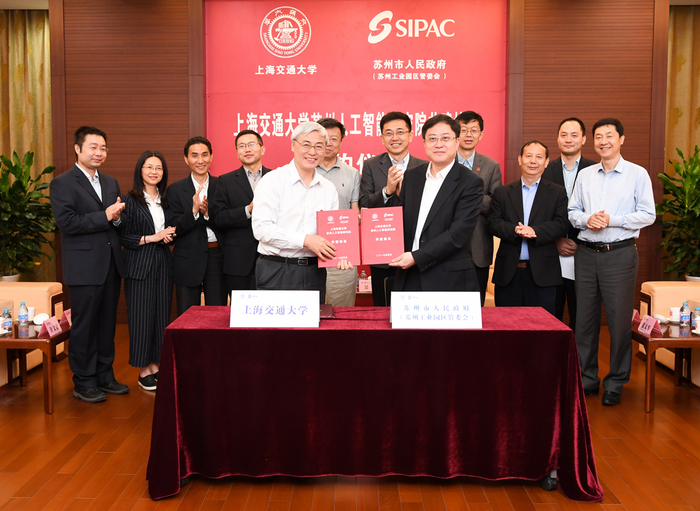 上海交通大学苏州人工智能研究院签约仪式在交大闵行校区新行政楼A楼举行。人工智能研究院学术委员会主任、国家自然基金委副主任、中国工程院院士高文,苏州工业园区管委会主任周旭东,上海交通大学副校长吴旦出席会议并讲话。苏州工业园区管委会副主任、科教创新区书记丁立新,科技和信息化局党组书记、局长许文清,科技和信息化局副局长、科技招商中心主任肖诗滔,科协副主席徐积明,上海交通大学未来媒体网络协同创新中心主任张文军,科学技术发展研究院常务副院长关新平,先进产业技术研究院院长刘燕刚,地方合作办公室主任陶剑,电子信息与电气工程学院院长毛军发、党委书记苏跃增、副院长王延峰,计算机系教授、苏州思必驰公司创始人俞凯等参加签约仪式。仪式由王延峰主持。