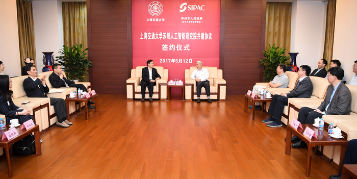 5月12日,由上海交通大学与苏州市人民政府、苏州工业园区管委会共建的上海交通大学苏州人工智能研究院签约仪式在交大举行。上海交大校长、党委副书记林忠钦在徐汇校区总办公厅亲切会见了苏州工业园区管委会主任周旭东一行。林忠钦表示,上海交通大学与苏州市长期以来具有良好的合作关系,人工智能研究院的建立符合国家人工智能战略,有利于推动人工智能产业实现跨越式发展,希望研究院能够成为上海交通大学产学研合作的新示范。
