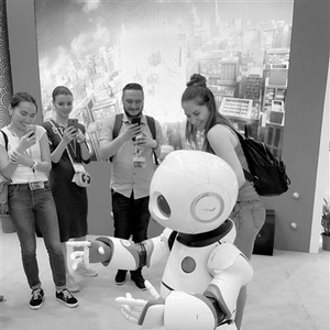 “小胖,你几岁了?”面对观众的发问,机器人立刻机智地回答:“现在的年龄是秘密,不可说,不可说。”记者在文博会河北展区看到,小胖机器人这个萌元素格外吸睛。一个身高1.2米左右,外形似企鹅,有一双超Q大眼睛的智能机器人正在忙碌地“应付”着观众的各种问题。