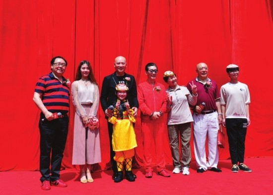 5月12日,六小龄童(右四)、迟重瑞(左三)、马德华(左一)、刘大刚(右二)相聚长沙步步高梅溪新天地帷幕开啦星城蜡像馆,为自己在《西游记》里扮演的角色蜡像揭幕并与粉丝合影。