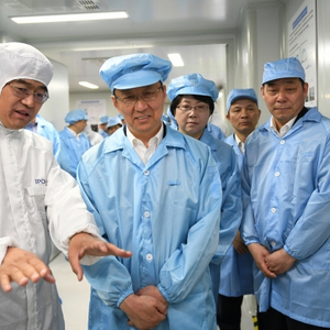 韩正一行首先参观了我校先进微结构材料教育部重点实验室。该实验室围绕“电磁波功能微结构材料及应用、强激光微结构材料及元器件、微结构材料设计与仿真”等三个特色研究方向,取得了一批高水平的研究成果,特别是王占山团队“高性能激光薄膜器件与装备”系列专利技术成果实现技术转移,成为同济大学历史上现金收益最多的技术成果转移项目。