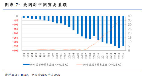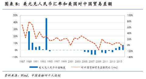 历史上,美国时常以货物贸易逆差为由,要求其最大贸易逆差来源经济体的货币升值(见图表4)。但不论从上世纪七八十年代施压日本和德国货币升值,还是前些年施压人民币升值 的经验来看,效果均不尽理想。