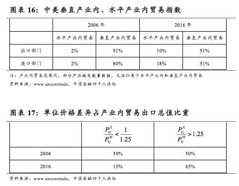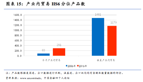我们基于UNCOMTRADE所公布美方口径的HS6编码数据,计算了2006年和2016年美国对中国所有进出口商品的贸易重叠度 。结果显示,从产业结构看,中美之间的竞争性并不强,而是高度互补(见图表14至图表17)。基于此,中美经贸之间存在很大的合作空间。发挥比较优势,有助于美国夕阳产业的顺利退出,更低的商品价格有助于美国消费者福利和储蓄率的提高;中国经济的持续增长,将从投资和消费、货物和服务贸易等方面,向美国产生正面溢出。中国有可能继续对美保持贸易顺差,但可以通过民间投资的方式,为美国改善基础设施,创造就业机会,实现中美经贸合作的共赢。