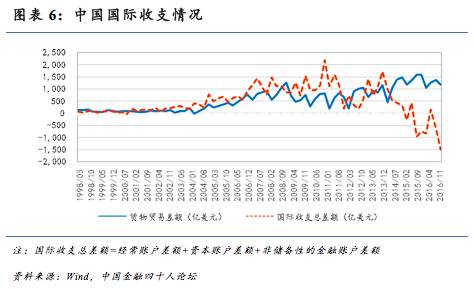 另一方面,日益加大的国际资本流动在汇率浮动中起了关键的作用,继续以货物贸易差额作为汇率政策的立足点可能已有些过时。以中国为例,2014年之前,货物贸易在国际收支差额变化中起到最为重要的作用;随着资本开放程度逐步提高以及宏观基本面的变化,2014年起至今,中国国际收支总差额与货物贸易差额走势出现了明显的分化(见图表6)。
