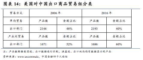 在全球价值链的贸易格局中,美国跨国企业利用海外相对廉价的劳动力和原材料进行生产,再将产品销往美国。据美国经济研究局(BEA)统计,美国海外分支机构直接向美国或者美国母公司出口的金额占了美国进口总额的40%以上,近两年更是高达45%以上(见图表10)。中国也存在着类似的情况:尽管中国对美国有巨额的贸易顺差,但事实上大量顺差是外商投资企业,包括美国在华企业创造的。