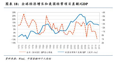 当前国际货币体系的流动性基本上由美元来承担,美国一旦出现贸易盈余,则全球流动性紧缩,全球经济因此而陷入低迷,由此也将反过来拖累美国(见图表18)。不仅如此,美国可以从国际借用他国储蓄、实现低成本融资的优势,也使得美国居民消费和政府支出在相当程度上面临着“预算软约束”。因此,推动国际货币体系多元化,其他经济体可以帮助美国分担国际贸易逆差,同时提供多元化的国际流动性。对美国而言,一个更为多元化的国际货币体系,将有助于硬化美国居民和政府的预算约束,促进美国的经济结构转型。(管涛系中国金融四十人论坛高级研究员,鲁政委系兴业银行首席经济学家,郭嘉沂系兴业银行研究员)