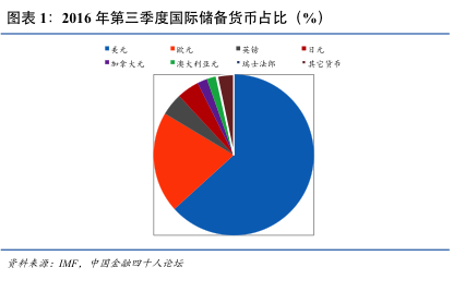随着布雷顿森林体系解体,战后建立起来的美元本位虽有所弱化,但美元在国际货币体系中仍处于独一无二的中心货币地位(见图表1)。