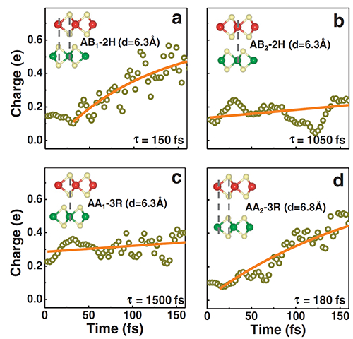 图2 不同层间堆垛导致不同的电荷转移时间。