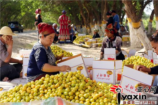 亚心网讯(通讯员 李靖海)5月18日,在具有“中国第一大早熟杏园”之称的新疆托克逊县夏乡南湖村,村民们正在忙碌着采摘杏子,来自全国各地的收购商们也在对杏子进行分拣包装,准备运往全国各大城市,最快的可在24小时内到达内地各大超市。