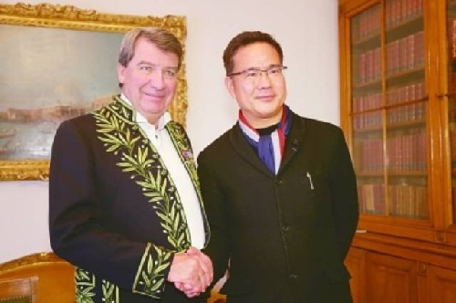 董强与法兰西道德与政治科学院终身秘书长达尔科斯先生在一起情寄未名畔,源头活水来