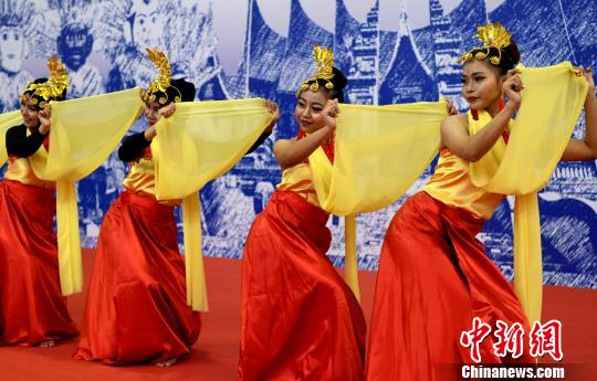 第十九届“海交会”印尼馆开馆式上,舞蹈演员表演印尼舞蹈。 刘可耕 摄
