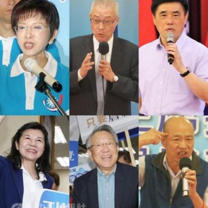 国民党主席选举6位候选人:洪秀柱(上排左起)、吴敦义、郝龙斌、潘维刚(下排左起)、詹启贤、韩国瑜。“中央社”图