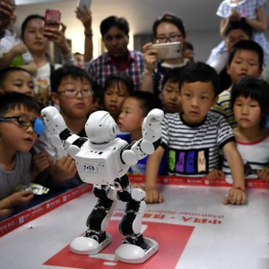 在中科大西校区工程科学学院科普点,一大波机器人“来袭”。机器人通过指令熟练地演示了俯卧撑、仰卧起坐,还跟随音乐翩翩起舞。在机器人制作体验展上,来自合肥五十中学的学生李亮认真地听讲解员介绍机器人制作的三个步骤——铝片切割、焊接电路、输入程序。从一块铝片变成可以操控的小型机器人,并在志愿者们的指导下,李亮现场学习了如何对机械零件进行加工,亲身体验了一回制作机器人的过程。