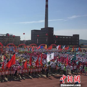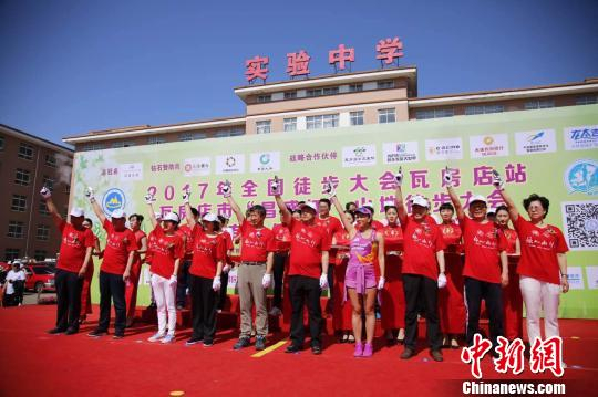 大连瓦房店市山地徒步大会开幕。 杨毅 摄
