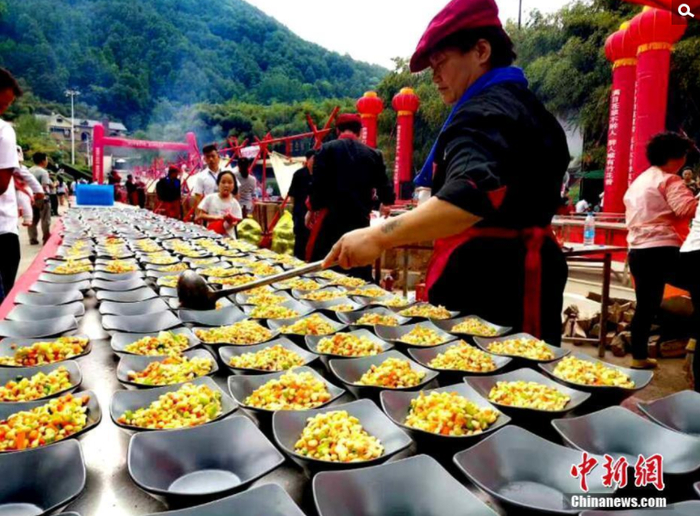 河南栾川万人吃豆腐 场面壮观