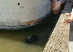 从视频里可以看到,一只海狮时不时将头探出水面,游人在一旁观赏喂食,四周是人群的笑声,还有人向海狮吹口哨。据视频拍摄者迈克尔(Michael Fujiwara)描述,海狮的出现吸引了游人的注意,一位戴眼镜的小女孩和她的家人来到码头边。