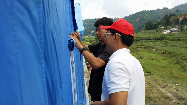 “患难见真情,往往窘迫的环境更能让我们和老百姓的感情升华。”高大鲲还记得9月17日,帐篷已经搭建到照明区域外,半夜里又转移来一群灾民在报到处等待安置,总指挥负责安排他们与建好帐篷的人家合住,统计协调工作还需要一段时间。偏在这时又下起雨,工作现场总能听见“这里需要光照,这儿缺人……”的喊声,大家只好摸黑干活。志愿者的手机光亮始终不怎么够用,有个好心人打着车灯在雨中把摩托车推来推去给大家照亮,又有一位村民没有雨衣也没穿志愿者服装,浑身已经淋透,嘴里叼着手电穿梭在志愿者中间,四处补光,夜色中任何一束光都让人心里暖和。